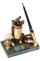 Classic Golf Calendar and Pen Set         Hand-crafted and painted, the classic golf calendar and pen set is an ideal gift for the office   or home desktop. Its perpetual day/date calendar consists of playful dice that easily display   the days of the week and month. Includes a pen.