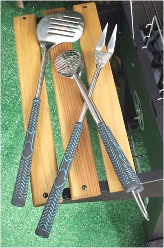 This is a really nice set of grilling tools with golf grips.  I think the nicest thing about them is that if your golfer has a set type of grips that he/she uses it would be fairly easy to put those g...