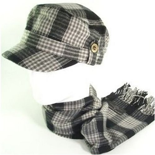 NEW LARGE PLAID STRIPE CADET MILITARY GI CASTRO CAP CABBIE CABBY DRIVER HAT CAP & LONG 12 X 72 SCARF COORDINATE SET!!! "SOFTER THAN CASHMERE" REGISTERED TRADEMARK SCARF. UNBELIEVABLY SOFT, TRULY LUXURIOUS FEEL! CADET MILITARY HAT PLAID CAP with HARD BRIM, MATCHING PATTERN , WITH SCARF, ELASTIC BACK, METAL BUTTON EMBELLISHMENT, INTERIOR LINING WITH SWEATBAND. GREAT GIFT SET! HOTTEST LOOK FOR THE SEASON, THEY WILL NOT LAST! Fabrication: 100% SUPER SOFT ACRYLIC STYLE #dyw-0834mbcdsetblk