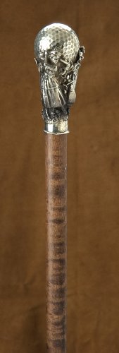 Sterling Silver Golf Ball / Player Head, Beech Wood Body Cane / Walking Stick