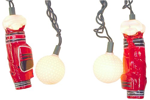 10-Piece golf bag & golf ball novelty Christmas light set from the Enchanted Forest Christmas collection, by Kurt Adler