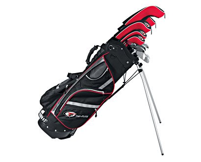 A fully loaded 18-piece set thats the total package in one box. The Top-Flite XL 5000 Set is comprised of a 460cc forged driver with draw-biased weighting, two matching stainless steel fairway woods, two easyto- hit stainless steel hybrids, six perimeter-weighted stainless steel irons and a putter. Also included are a lightweight stand bag and fi ve head covers. Available in left and right-handed sets.