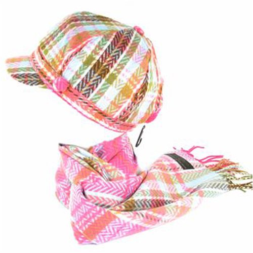 NEW JUNIOR PLAID NEWSBOY CABBY DRIVER HAT CAP & LONG 12 X 72 SCARF COORDINATE SET!!! "SOFTER THAN CASHMERE" REGISTERED TRADEMARK SCARF. UNBELIEVABLY SOFT, TRULY LUXURIOUS FEEL! NEWSBOY CABBIE HAT KNIT HARD BRIM, SIDE BUTTON EMBLESHIMENT, MATCHING PATTERN WITH SCARF, ELASTIC BACK, INTERIOR LINING WITH SWEATBAND. GREAT GIFT SET! GREAT FOR LADIES & TEENS! HOTTEST LOOK FOR THE SEASON, THEY WILL NOT LAST! Fabrication: 100% SUPER SOFT ACRYLIC STYLE #dyw-0706cabsetpk SIZE: One size: Medium : 57cm, 22-3/8, 7-1/8 + (Will stretch to larger size) Brim: 1-1/2 inches Color: PINK with multi-colors (as shown)